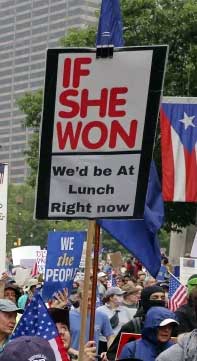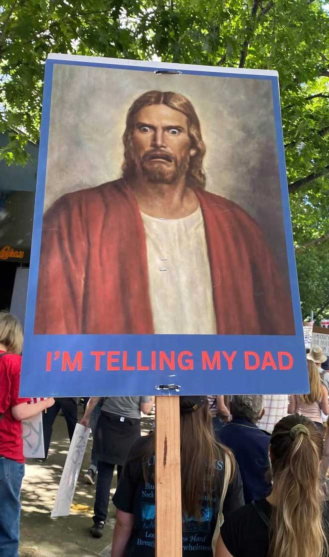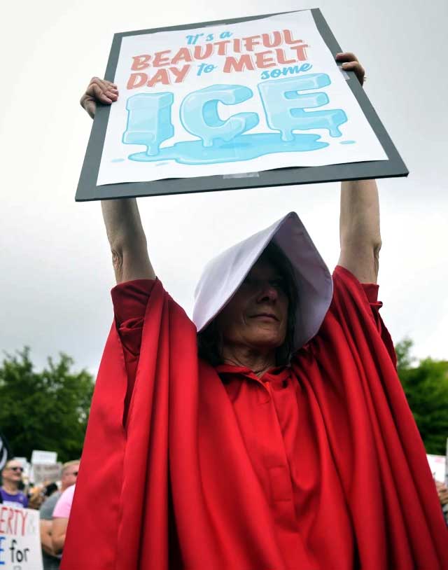 Handmaid's Tale imagery has been used a lot, but hey, cliches are cliches for a reason. The sign is great, too.