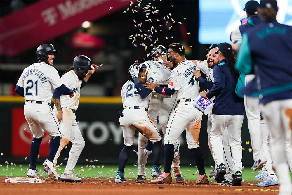 And, just for fun, the celebration after the win at the ballpark. J.P. Crawford (2nd form left) had a perfect night, going 3-for-3 with two walks