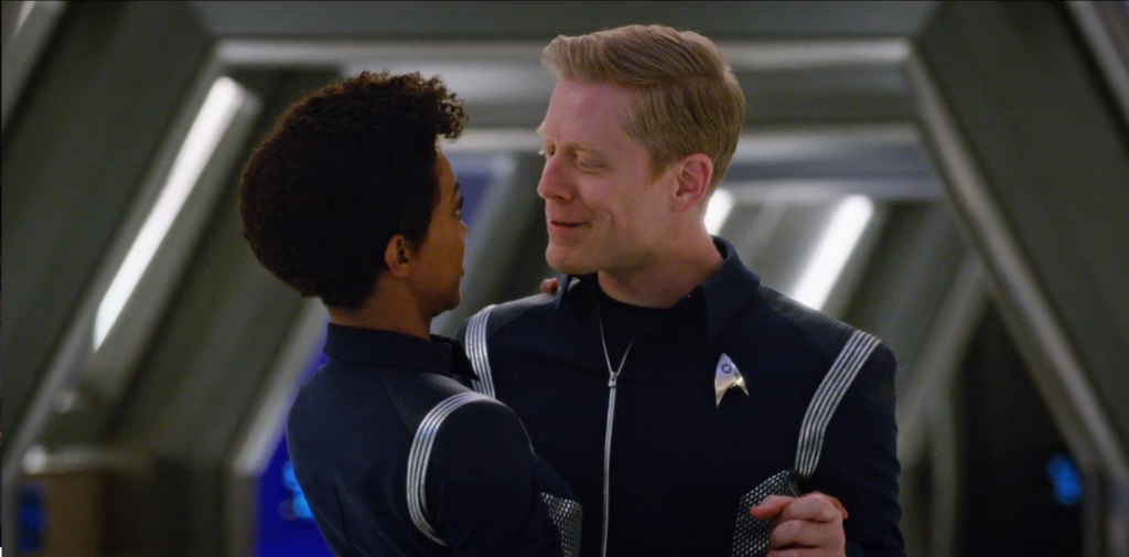 A nice moment between socially inept Burnham and 'shroom-addled Stamets from "Magic to Make the Sanest Man Go Mad"