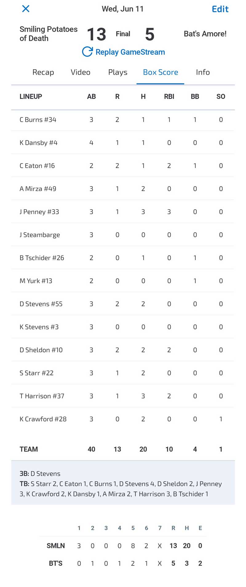 True, we were playing against a team on the lower end of the talent meter in Bat's Amoré, but a win is a win, especially when you're the league's analogue to the last few years' editions of the Colorado Rockies. More than one of my teammates claimed they would be celebrating the event—and using it as an excuse to slack off on other things—for at least a month.